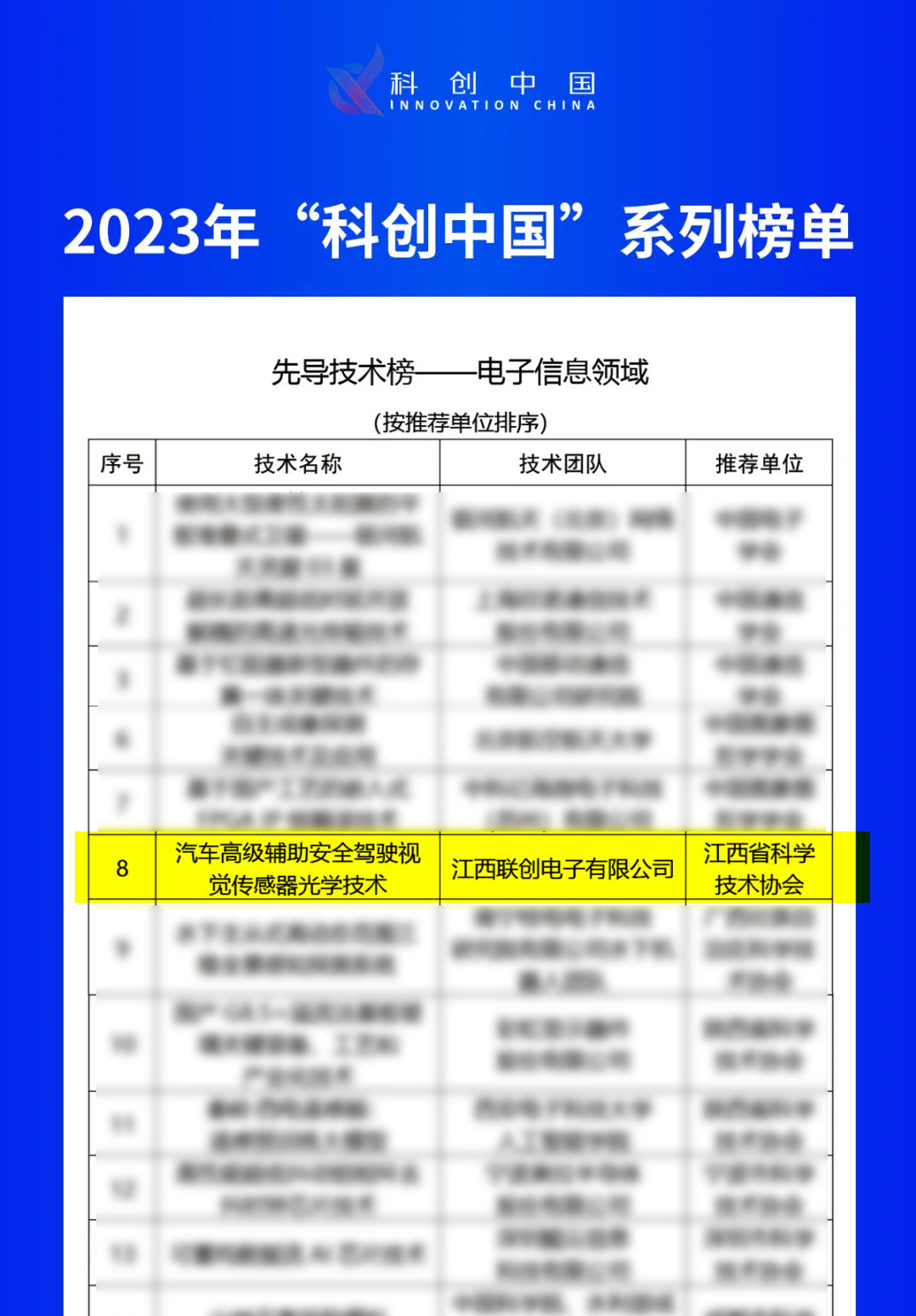 近日,中国科学技术协会公布了2023年度“科创中国”系列榜单遴选结果,江西星空平台有限公司的“汽车高级辅助安全驾驶视觉传感器光学技术”成功入选电子信息领域先导技术榜。